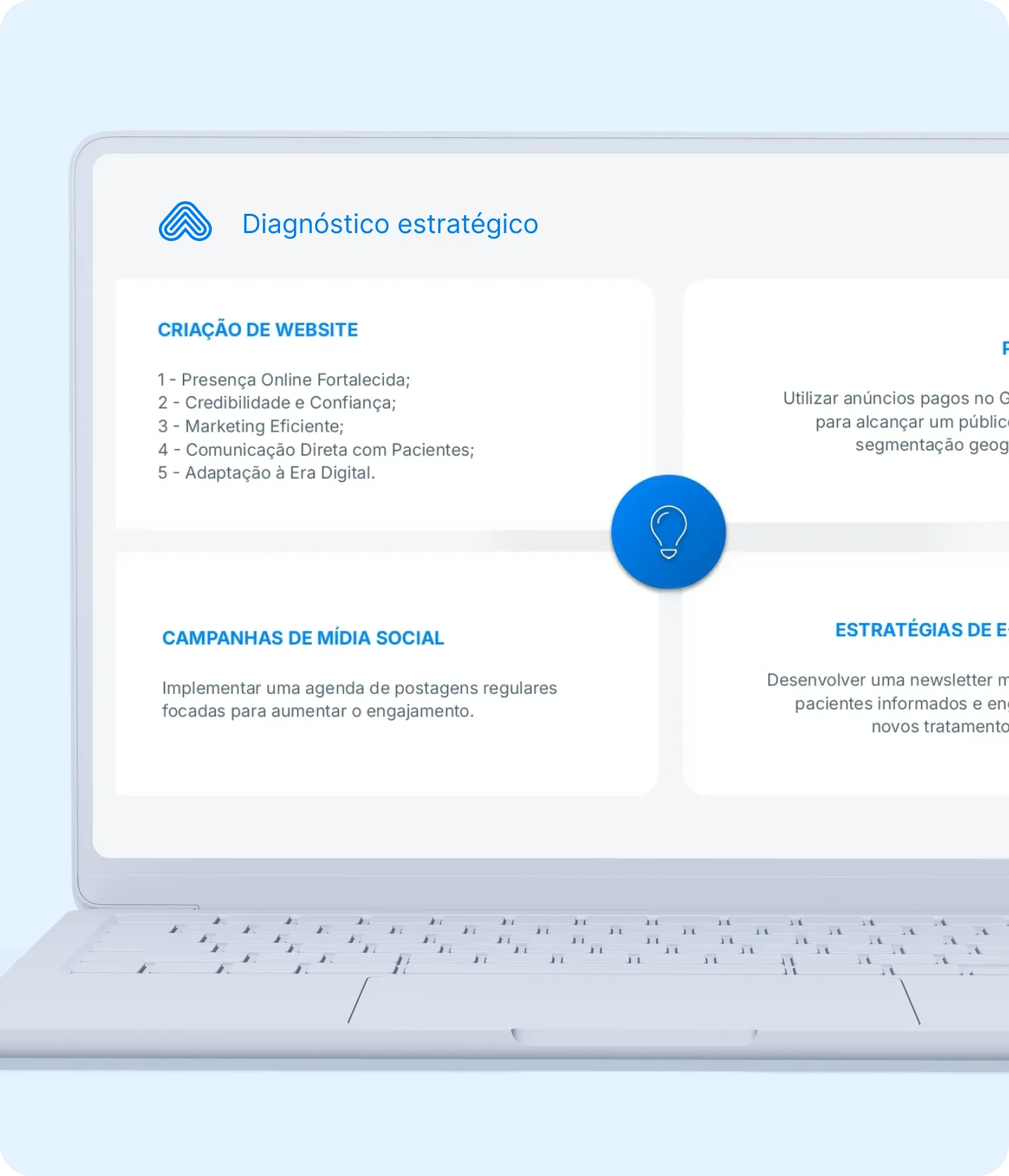 Não é obrigatório fazer um diagnóstico completo. O diagnóstico estratégico é modular, flexível e adaptado à realidade atual da clínica. Isso significa que o médico pode escolher onde quer aprofundar, de acordo com o principal desafio do momento, como por exemplo: