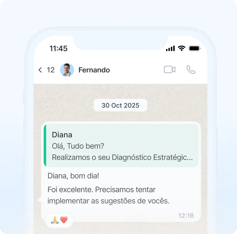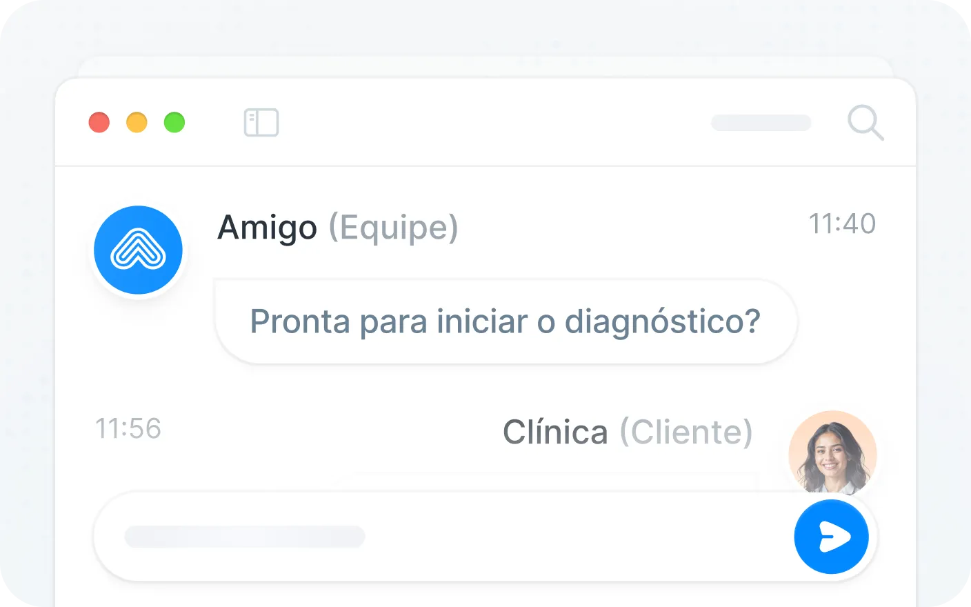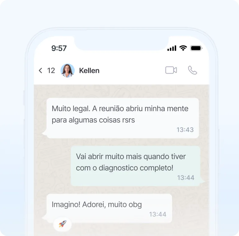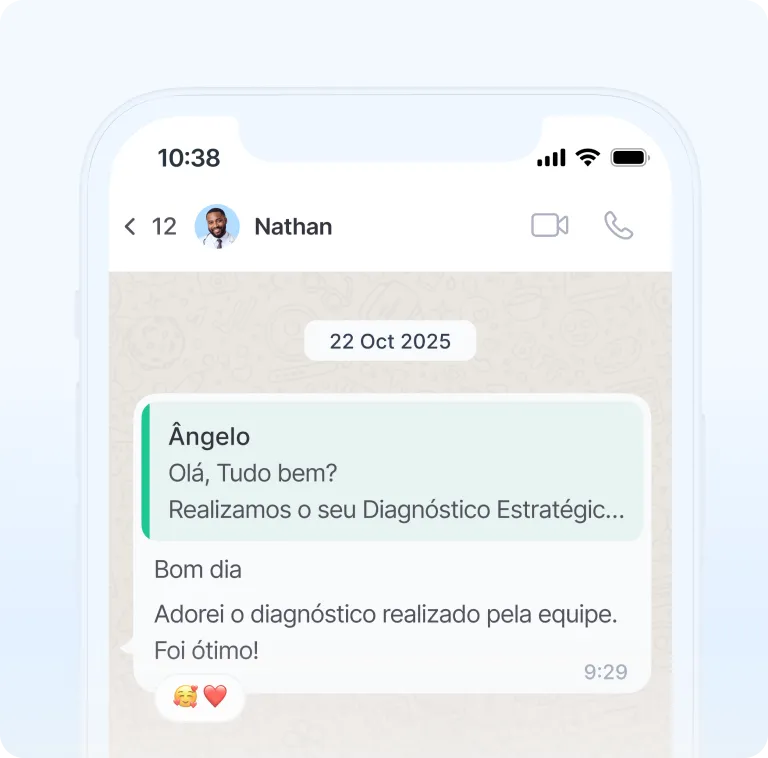O diagnóstico leva, em média, 60 a 90 minutos. É um encontro objetivo, com roteiro estruturado, sem enrolação e focado nos pontos que realmente impactam o faturamento, a conversão, o financeiro e o atendimento de sua clínica ou consultório.