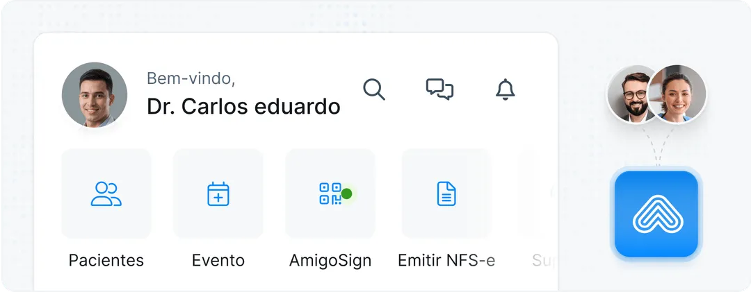 Nosso ecossistema foi criado para simplificar a prática médica em todos os níveis. De atendimentos a recebimentos, da gestão da clínica à jornada do paciente, tudo flui melhor com a Amigo Tech.
