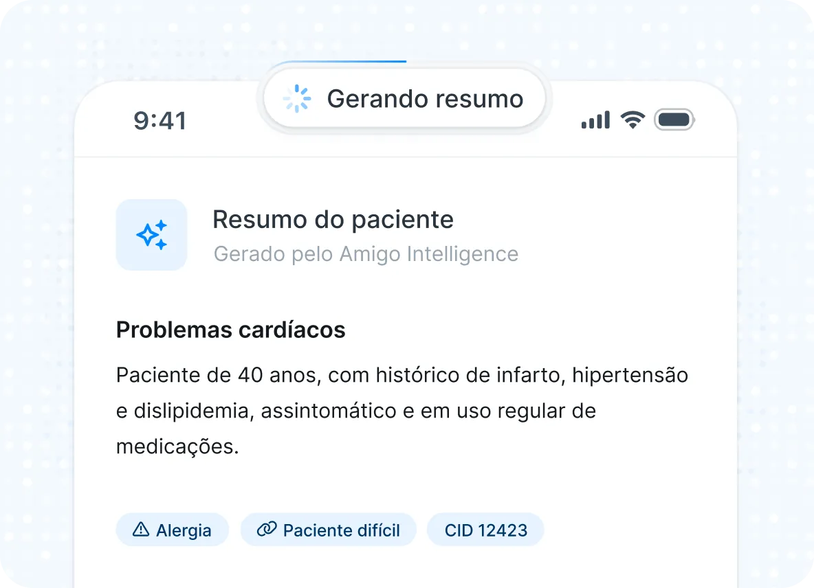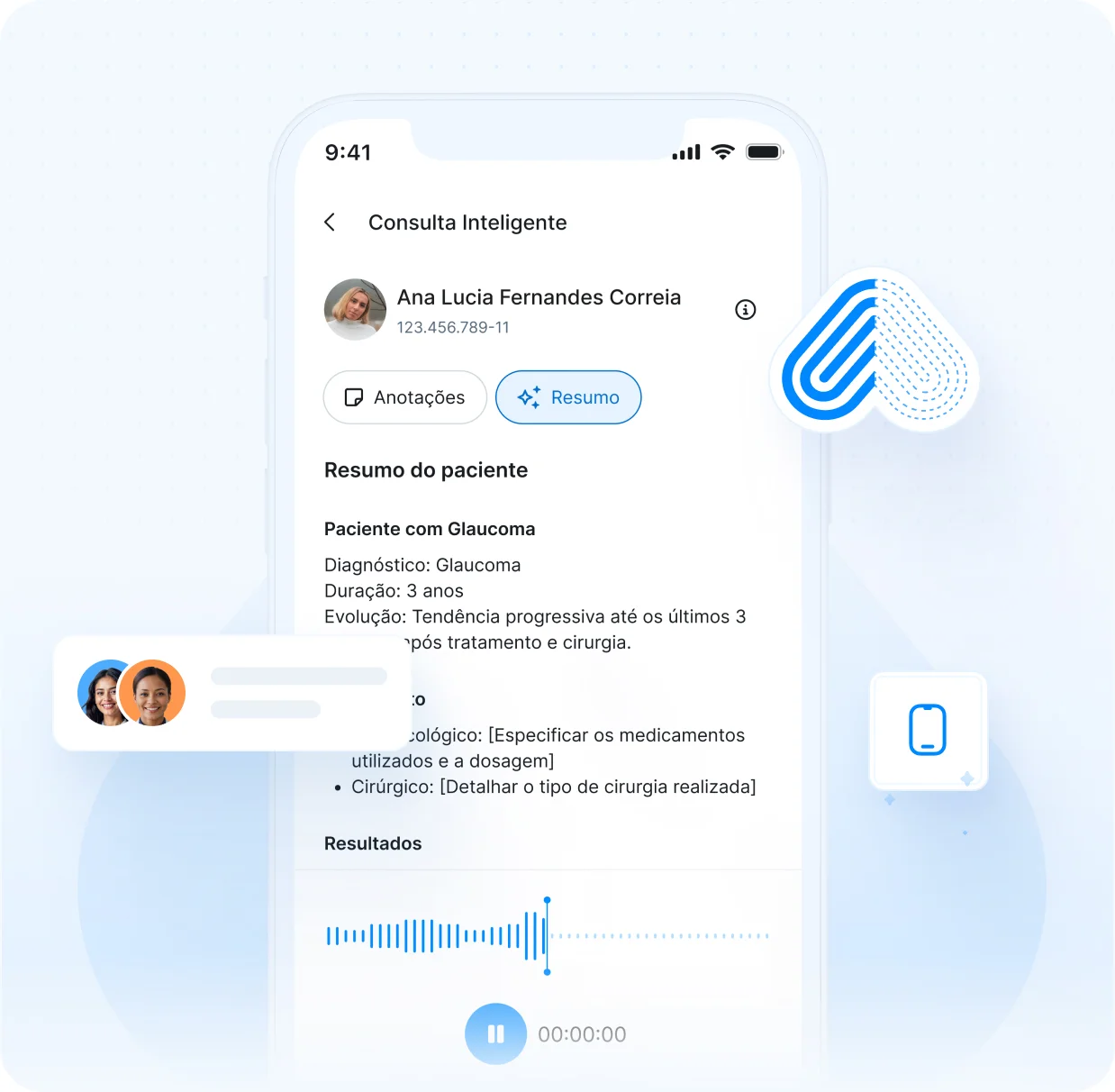 Com a IA e a Consulta Inteligente integradas ao prontuário, suas consultas são registradas automaticamente e você recupera seu tempo para o que realmente importa.